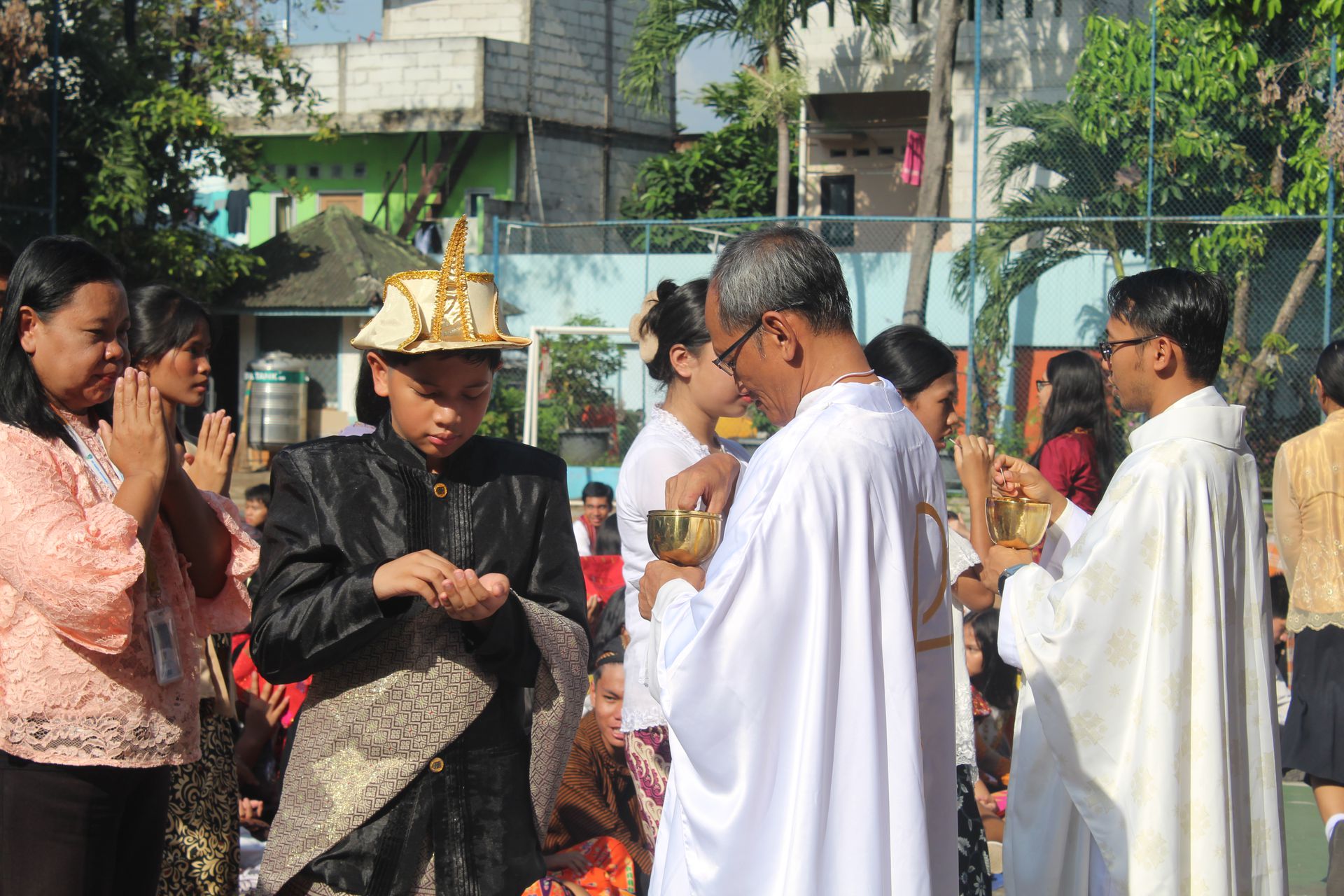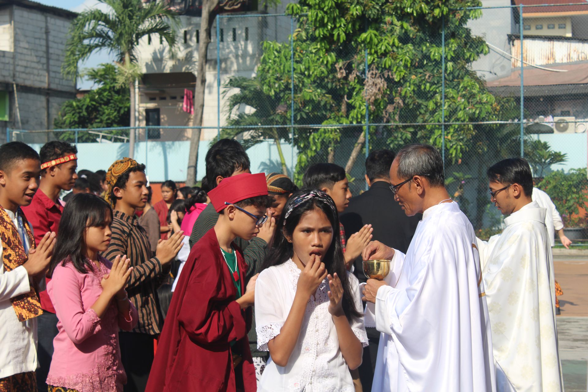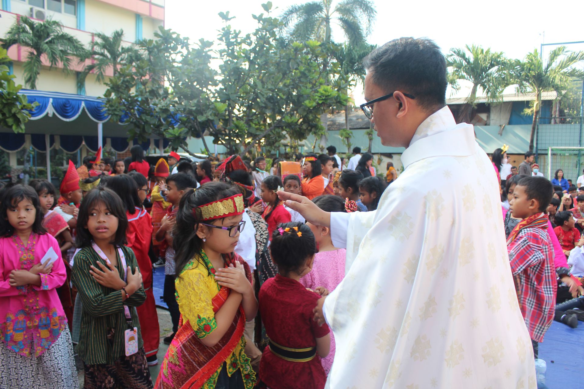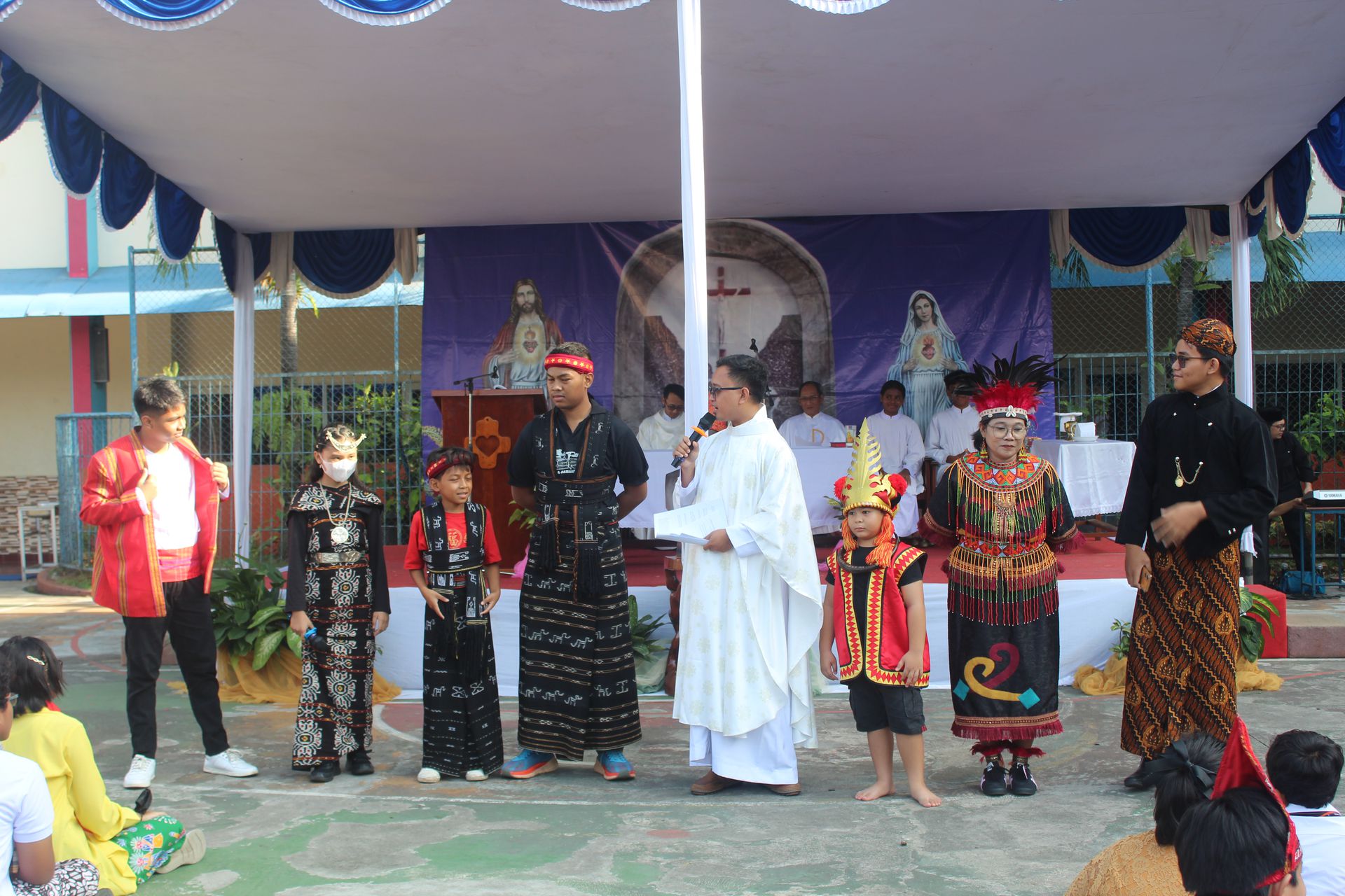 Sebagai bentuk keterlibatan aktif dalam misa, Romo Trisna memanggil beberapa anak yang mengenakan pakaian adat terbaik dari masing-masing jenjang pendidikan, termasuk seorang perwakilan dari para guru. Anak-anak tersebut maju ke depan dan berbagi pengalaman serta makna dari pakaian adat yang mereka kenakan. Momen ini menjadi salah satu bagian yang menarik dalam perayaan misa karena menampilkan keberagaman budaya dalam satu perayaan iman.
